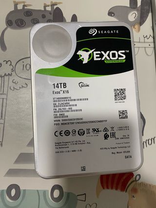 Disco duro Seagate Exos X16 de 14TB, ideal para NAS. - Capacidad: 14TB - Modelo: Exos X16 - Interfaz: SATA - Fabricado en Tailandia - Fecha de fabricación: 30NOV2020