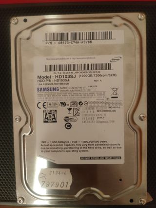 Vendo disco duro con capacidad de 1000 GB en buen estado
