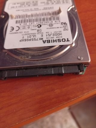 Disco duro portátil Toshiba MK7559GSXP de 750 GB en buen estado. Se ve algo usado, pero en general está bien conservado. - Capacidad de almacenamiento: 750 GB - Modelo: MK7559GSXP - Marca: Toshiba - Fabricado en Filipinas