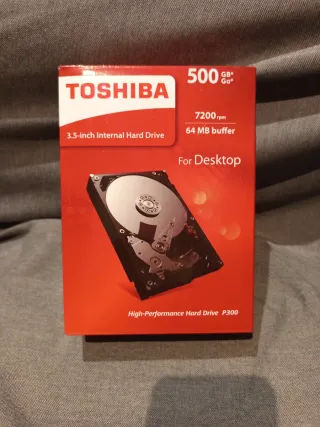 Disco duro interno Toshiba de 3.5 pulgadas con 500 GB de capacidad. - Velocidad de 7200 rpm. - Búfer de 64 MB. - Diseñado para uso en escritorio (Desktop). - Modelo P300 de alto rendimiento.