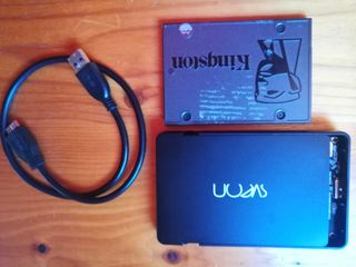 EL CABLE NO FUNCIONA, FALLA MUCHO, NO INFLUYE AL PRECIO EL DISCO Y ADAPTADOR SI VAN Se vende disco de estado sólido Kingston de 120GB junto con un adaptador Sveon. - Disco SSD Kingston de 120GB. - Adaptador Sveon para conexión externa.