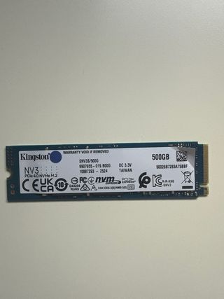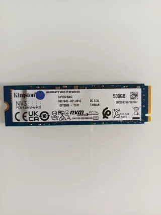 Disco de estado sólido Kingston NV3S de 500GB en formato M.2. - Capacidad: 500GB - Interfaz: PCIe 4.0 NVMe M.2 - Voltaje: DC 3.3V - SIN ESTRENAR
