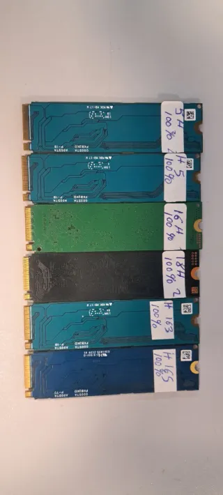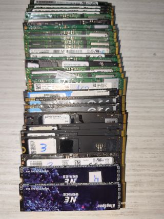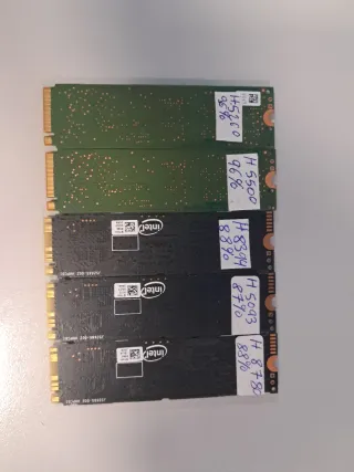 PRECIO OBVIAMENTE POR UNIDAD, CADA UNO TIENE SU PRECIO SEGUN SU MARCA. NO SE REALIZAN ENVIOS, NO NEGOCIABLE, NO CAMBIOS. TODOS PROBADOS Y TESTEADOS, FUNCIONAL CON CRISTAL DISK, SE ADJUNTAN PRUEBAS DE ALGUNOS AL AZAR. SE PUEDEN PROBAR SI TRAES LOS MEDIOS. * KINGSPEC, DAHUA Y OIRIGIN: 38€ UNIDAD. (NINGUNO SUPERA LAS 200 HORAS DE USO, PRACTICAMENTE NUEVOS) * INTEL: 40€ UNIDAD. * MICRON Y SK HINYX 44€ UNIDAD. *SAMSUNG: 48€ UNIDAD.