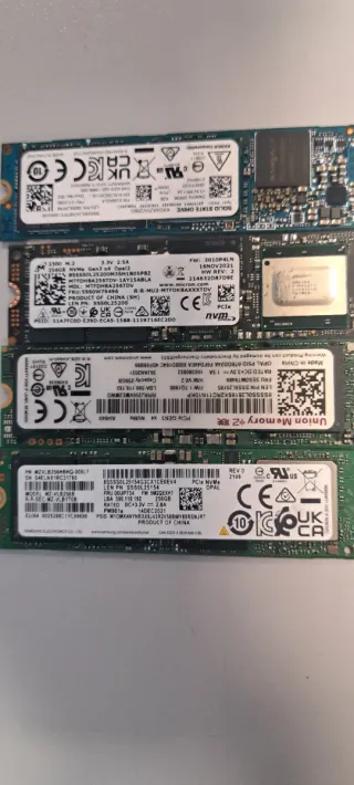 Unidad de estado sólido M.2 NVMe de 256GB. Precio por unidad 20€ Varias marcas Hynix/phison/samsung/micron Horas de uso en el reverso de cada Disco - Interfaz PCIe Gen3 x4. - Factor de forma M.2 2280 - Compatible con Opal 2.0.
