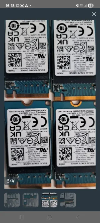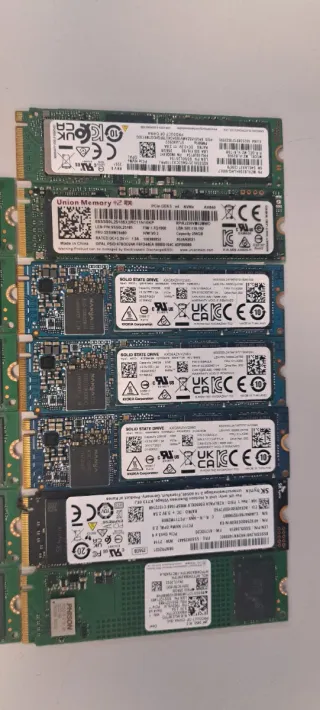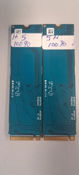 Dos Unidad de estado sólido M.2 de 256GB. Horas de uso en la descripcion Tras formateo 236gb - Interfaz NVMe. - Factor de forma M.2 2230. - Fabricado en Taiwán.