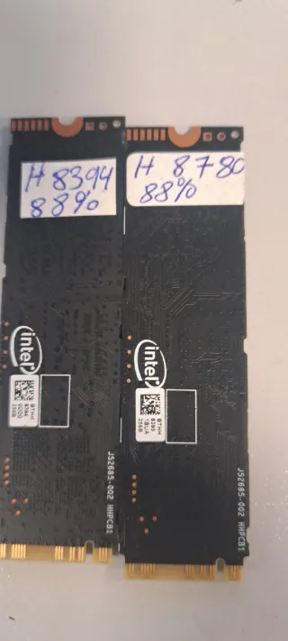Dos unidades SSD M.2 NVMe de 256GB de Intel. Son ideales para ampliar el almacenamiento de tu equipo. HORAS DE USO INDICADO EN EL REVERSO TRAS FORMATEO ESTA EN 236GB - Capacidad: 256GB cada una. - Interfaz: NVMe PCIe. - Factor de forma: M.2 2280. - Modelo: SSDPEKKF256GBL.