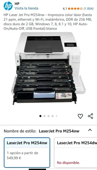 HP Laser Jet Pro M254nw - Impresora color láser