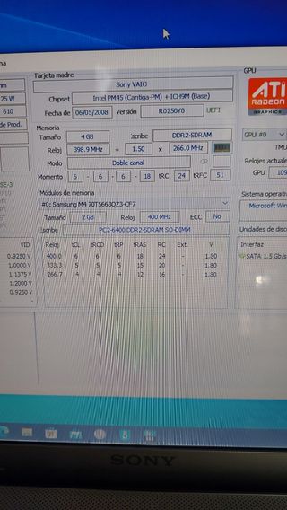 Ordenador portátil Sony Vaio en color negro. Un equipo fiable para el día a día. - Procesador Intel Core 2 Duo P8400. - 4 GB DDR2 - 250 GB de disco duro - GPU ATI Mobility Radeon HD 3470 - Puertos: 3 usb, vga, hdmi, ethernet y módem, unidad óptica BR-D, fireword (s400), micro y audio por jack 3,5, WiFi, Bluetooth, botones multimedia, lector de tarjetas sd... Windows 10 instalado. No se entrega con ningún software más si no es software libre. Bateria muerta, cargador original. La pantalla tiene fugas de luz en los márgenes que no afecta a su uso. Ver fotos. Completamente funcional a día de hoy. Se vende tal cual.