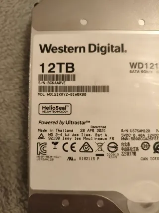 Disco duro Western Digital WD Gold 12TB (modelo WD121KRYZ-01W0RB0). Disco empresarial para servidores y NAS. Presenta 2 sectores reasignados en SMART (no hay sectores pendientes ni errores actuales). Testeado con CrystalDiskInfo y verificado en uso posterior sin incidencias. Funciona correctamente. Ideal para almacenamiento secundario, copias de seguridad o entornos no críticos. Se adjunta captura SMART real. Características técnicas: Modelo: WD121KRYZ-01W0RB0 Capacidad: 12 TB Serie: WD Gold (Enterprise) Interfaz: SATA Sectores reasignados: 2 Sectores pendientes: 0 Estado: funcional, SMART con historial