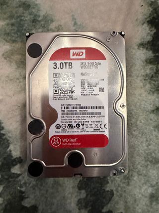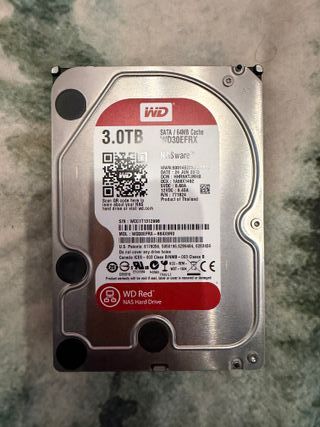 Vendo discos duros WD Red 3TB (WD30EFRX) para NAS. 2 unidades. Características: • 3TB • SATA III • 64MB Cache • NASware • Modelo CMR (no SMR) • Especiales para RAID Proceden de una cabina funcionando en entorno empresarial, siempre en RAID y con ventilación y uso controlado (no uso doméstico intensivo ni sobremesas sin ventilación). Ideales para: • NAS doméstico • Laboratorio IT • Homelab • Backup secundario • Reposición en cabinas