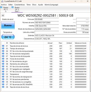 Disco duro HDD WD50EZRZ 5TB 3.5′′ SATA. SOLO 59 H!