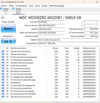 Disco duro HDD WD50EZRZ 5TB 3.5′′ SATA. SOLO 190h!