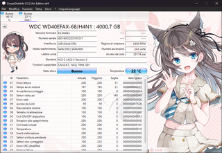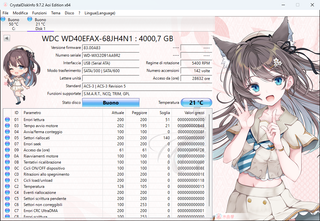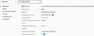 Disco duro WD Red NAS de 4TB, modelo WD40EFAX. - Capacidad: 4 TB (3.64 TB reales). - Horas de encendido: 1368 días y 14 horas. - Temperatura de funcionamiento: 17°C / 62°F. - Estado SMART: Bueno. - Historial de acceso al disco: Bueno. - Totales de sectores anormales: 0. HDD WD RED NAS 4TB WD40EFAX-1368 dias de uso