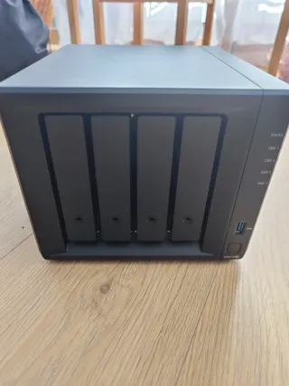 NAS Synology DS413 + 4 HDD WD Red 3TB, en perfecto estado, de 2013, muy cuidado con todos los discos SMART pasado. 4 discos WD Red 3TB (WD30EFRX), total 12TB (según RAID, 8TB tolerancia 1, 6TB tolerancia 2 discos). Con cable de red, alimentación y embalaje original. SO: Synology DSM (última versión 7.x fuera soporte). CPU: Freescale QorIQ P1022 DualCore 1.067GHz.RAM: 1GB DDR3. Bahías: 4 hot-swap (3,5” SATA III/SATA II/SSD 2,5”). Puertos traseros: 2xUSB 3.0, 1x eSATA, 2x LAN Gigabit. frontal: 1xUSB 2.0. Conectividad: LAN UPnP. Suite descarga, copias seguridad, nube. Se vende por tener disponer de uno nuevo. No se venden por separado.