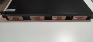 NAS en bastidor Fujitsu QR802 con 4 discos duros de 3TB. Características: - 4 bahías de 3,5", con 4 discos duros de 3 TB cada uno. 3 de ellos tienen 10 años, y el otro 3. - Doble puerto de red a un gigabit. - Doble fuente de alimentación. - VGA y HDMI. - 7 USB. - 2 eSATA. - Raíles.