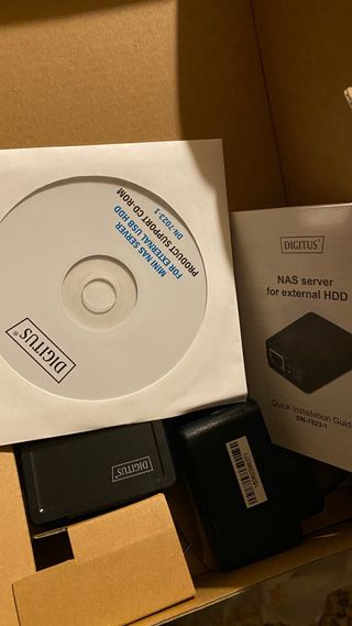 Este es un servidor NAS Digitus DN-7023 diseñado para discos duros externos USB. - Incluye CD de soporte de producto. - Incluye guía rápida de instalación. - Incluye adaptador de corriente.