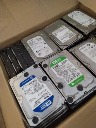 Lote de 41 discos duros de diferentes capacidades para reparar. Incluye unidades de 250GB, 500GB y 1TB. - Variedad de capacidades: 250GB, 500GB, 1TB. - Lote para piezas o reparación.