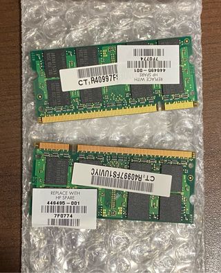 Son dos memorias de 1 gb 2Rx8 PC2 -5300S-555-12-E3. Se vende en conjunto. Memoria original quitada de un portátil hp. Funciona perfectamente. Prefiero trato en mano aunque se puede enviar.
