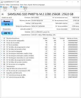 SSD Samsung en buen estado, ideal para mejorar el rendimiento de portátiles compatibles. Arranque rápido y sistema más fluido. ⚡💻 🔧 Especificaciones: Marca: Samsung Modelo: PM871b (MZ-NLN256F) Capacidad: 256 GB Formato: M.2 2280 Interfaz: M.2 SATA (no NVMe) Número de serie: S3U0NY0K926106 ✅ Estado: Usado y totalmente funcional. Se adjunta captura de CrystalDiskInfo para comprobar su estado. 🧹 Formateado y listo para usar. 📦 Entrega en mano o envío.