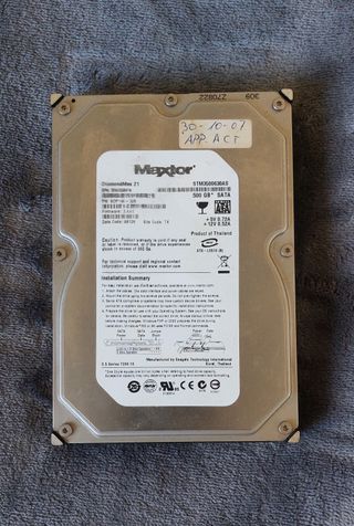 Maxtor DiamondMax 21 STM3500630AS 500 GB 7200 RPM, SN 9QG550FN En perfecto estado. Muy pocas horas de uso y pocos arranques Los que hagan propuestas estúpidas serán instantáneamente bloqueados