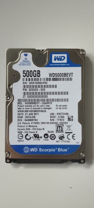 Disco Duro WD 500GB Scorpio Blue (WD5000BEVT) 2.5"