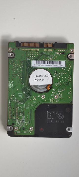 Disco duro mecánico de la marca Western Digital, modelo WD Scorpio Blue de 500GB. Ideal para portátiles antiguos o como almacenamiento adicional. Características principales: Capacidad: 500 GB Formato: 2.5 pulgadas (tamaño estándar para portátiles) Interfaz: SATA 3 Gb/s (SATA II) Velocidad de rotación: 5400 RPM Consumo: 5V / 0.55A Modelo: WD5000BEVT-24A0RT0 Fecha de fabricación: Enero 2011 Estado: Usado, funcionando correctamente Perfecto para: portátiles antiguos, almacenamiento externo con caja USB-SATA, proyectos informáticos vintage o recuperación de datos. #disco #discoduro #ssd #westerndigital