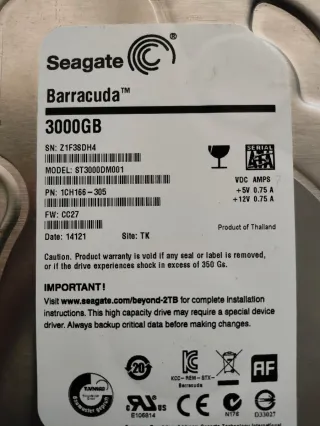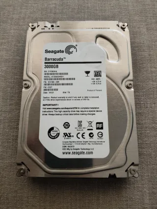 Disco duro interno Seagate Barracuda de 3TB. Funciona perfectamente. En buen estado, adjunto informe. - Modelo: ST3000DM001 - Capacidad: 3000GB - Número de serie: Z1F38DH4