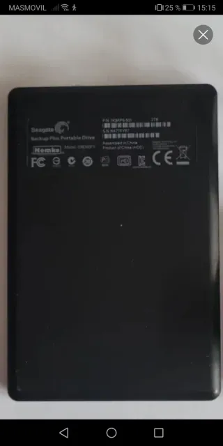 Disco duro externo Seagate de 2TB. - Modelo: ST2000LM003 - Capacidad: 2000GB - Voltaje: +5V 0.85A - Fabricado en Diciembre de 2014.