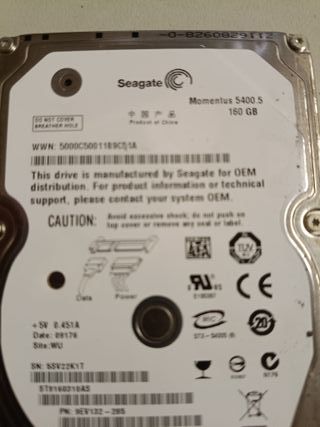 Disco duro interno de 2.5 pulgadas para portátil. - Perfecto estdo y sin sectores dañados. - Capacidad: 160 GB - Modelo: Momentus 5400.5 - Conexión: SATA - Fabricado por Seagate para OEM Si te interesan varios artículos de mi perfil preparo pack para que pagues solo 1 envío. Posibilidad de envío o recogida en zona los Ploms Reus.