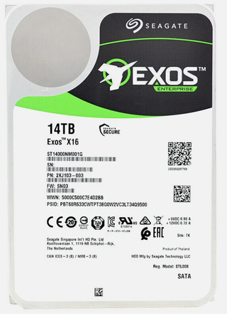 Disco duro interno Seagate Exos de 16 TB. Cómo nuevo, menos de 100 horas de uso. Comprado para proyecto de NAS, luego no ejecutado. - Capacidad: 16 TB - Interfaz: SATA - Modelo: Exos X16 Envío en caja acolchada de alta densidad.