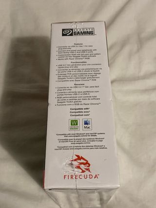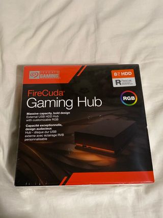 🔴NO NEGOCIABLE 🔴NO OFERTAS 🔴NO CAMBIOS 🟢Producto totalmente a estrenar y sin ningún tipo de uso o manipulación y ORIGINAL 100%. ✅SE HACEN ENVÍOS 24h ✅ENTREGA EN PERSONA ⛔️NO SE ENVÍAN MÁS FOTOS Disco duro externo Seagate FireCuda Gaming Hub de 8TB con iluminación RGB personalizable. El producto está precintado, sin abrir. - Capacidad: 8 TB - Conexión: USB - Iluminación: RGB personalizable - Incluye Rescue Data Recovery Services