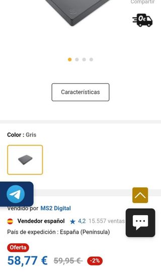 Disco duro externo de 2 terabytes está completamente Nuevo y en la pantalla del ordenador portátil se puede ver la capacidad de almacenamiento y en la otra foto también se aprecia muy bien la capacidad del disco duro, precio un poco razonable, el primero que me compré el Disco Duro le hago una buena Oferta. - Capacidad de 2TB. - Diseño elegante y compacto.