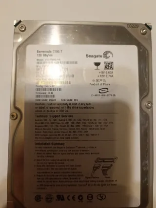 Disco duro interno Seagate Barracuda 7200.7. - Capacidad: 120 GB - Interfaz: ATA - Voltaje: +5V 0.63A, +12V 0.74A - Fabricado en China