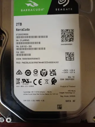 Disco duro interno Seagate BarraCuda de 2TB. - Modelo: ST2000DM008 - Capacidad: 2TB - Interfaz: SATA AF - Fabricado en Tailandia - Fecha de fabricación: 31 OCT 2020 muy poco uso