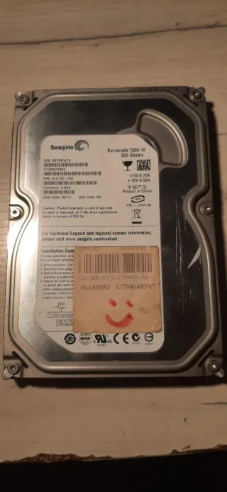 Disco duro interno Seagate Barracuda de 250GB. - Modelo: Barracuda 7200.10 - Capacidad: 250 Gbytes - Interfaz: SATA