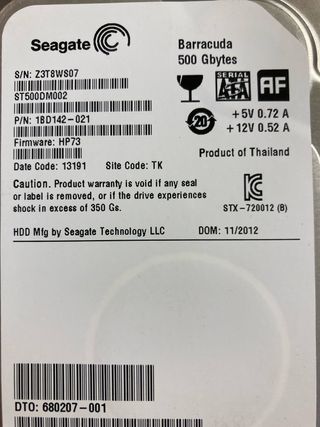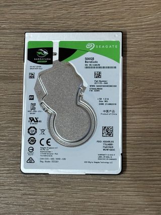 Disco duro Seagate Barracuda de 500 GB. Lo entrego en mano. - Modelo: ST500DM002 - Número de parte: 180142-021 - Firmware: HP73 - Fabricado en Tailandia