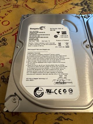 Se venden dos discos duros Seagate Barracuda de 500 GB cada uno. - Capacidad: 500 GB por disco. - Interfaz: SATA. - Formato: 3.5 pulgadas. Adjunto capturas de su estado de salud. Funcionan perfectamente. SOLO ENVÍOS. NO SE HACEN ENTREGAS EN MANO.