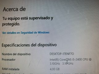 Ordenador de sobremesa Gateway con procesador Intel Core i5. - Procesador: Intel Core i5 2400 - Sistema operativo: Windows 10 -disco duro ssd 120gb