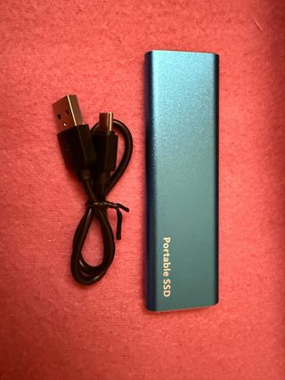 Disco de estado sólido portátil de 2TB en color azul. - Diseño compacto y ligero. - Carcasa metálica resistente. - Incluye cable de conexión.