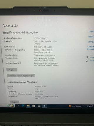 Portátil Lenovo T14 en color negro. Cuenta con un procesador Intel Core Ultra 7 155U. - Procesador: Intel(R) Core(TM) Ultra 7 155U 1.70 GHz - RAM instalada: 32,0 GB (31,5 GB usable) - Sistema operativo: Windows 10 Pro 64 bits - Edición: Windows 10 Pro - Versión: 22H2 1 tb disco duro ssd