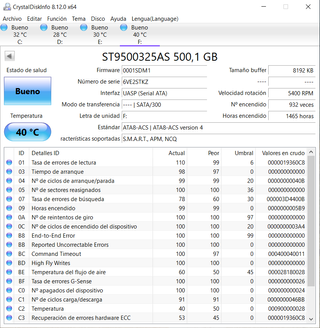 Disco duro bastante antiguo pero en perfecto estado de funcionamiento. Conexión sata. Crystaldisk en la última foto