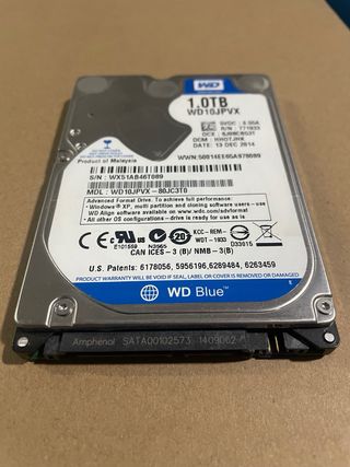 Disco duro interno de 1TB. - Modelo: WD10JPVX - Capacidad: 1TB - Interfaz: SATA - Están formateado bajo nivel, y testeado, 100% clusters correctos