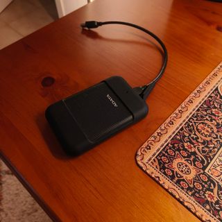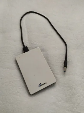 Disco duro externo portátil de 300GB. - Diseño compacto y ligero. - Conexión USB para transferencia de datos. A veces tarda en conectarse o hay que probar un par de veces hasta que se conecte