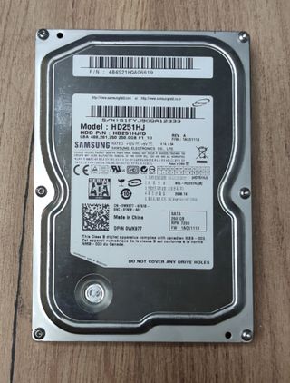 Disco duro interno Samsung de 250 GB. Comprobado con éxito. - Modelo: HD251HJ/D - Interfaz: SATA 3 Gbit/s - Formato: 3.5 pulgadas - Capacidad: 250 GB - Velocidad: 7200 rpm - Fabricado en China.