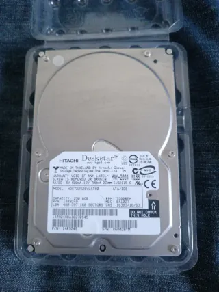 Disco duro interno Hitachi Deskstar de 250GB con interfaz IDE. - Capacidad: 250.0GB - Modelo: HDS722525VLAT80 - RPM: 7200 - Fabricado en Tailandia Puedes hacer un lote y enviar oferta