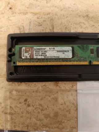 Módulo de memoria RAM Kingston KVR de 2GB. - Modelo: KVR800D2N6/2G - Tipo: DDR2 - Voltaje: 1.8V - Fabricado en Malasia