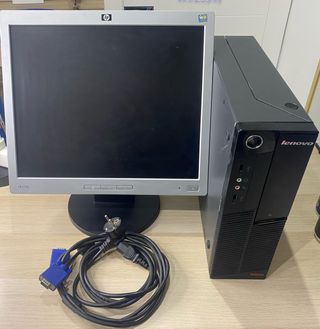 Se vende equipo informático completo con monitor y disco duro nuevo. - Disco duro nuevo de 250GB - Monitor HP - PC Lenovo Mantenimientos al día, funciona al 100%; especificaciones: Intel core i2 duo 4GB de RAM NO lector discos Monitor HP: Perfecto estado, pequeña fractura en la base de plastico (NO afecta en NADA, y es en la parte trasera asi que ni se ve) Disco duro: Seagate Barracuda 7200.10 de 250 GBytes A ESTRENAR INCLUYO 1 CABLE DE ALIMENTACIÓN Y 1 CABLE VGA Detalle: la carcasa de plástico negra exterior tiene un detalle, se rompieron 2 de los 6 pines de enganche y se le puso loctite (pequeña chapuza pero funciona perfecto)
