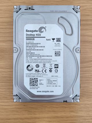 Disco duro HDD Seagate 3.5" 3TB.Fabricado en 12/2014. Disco de 7.200rpm. Usado para almacenamiento de datos. Formateado y comprobado. Libre de errores. - Capacidad: 3000GB - Modelo: ST30000M001 - Interfaz: SATA - Velocidad: 7200 RPM - Firmware: CC25