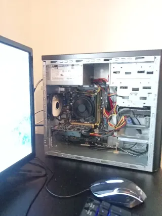 Ordenador de sobremesa ASUS en color negro. Diseñado para un rendimiento fiable. - Procesador: AMD athlon x4 641 4 núcleos 4 hilos a 3.0 GHz 4 Mbs de cache l2 - Placa base: Asus F1A75-M/CM/740/DP_MB Socket FM1 USB 3.0 - Memoria RAM: 4 gigas DDR3 hyper x a 1600 MHz - Tarjeta gráfica: Nvidia GeForce GTS 450 1 GB GDDR5 - Disco duro: SSD 60 gigas y HDD 160 gigas - Fuente de alimentación: B-MOVE PSU 600W - Sistema operativo Windows 10 64 bits El pc va genial se puede ver y probar. Hago envíos por correos y GLS. Se entrega con cable de corriente y HDMI para monitor. Juego probado: Roblox (arsenal) 60fps