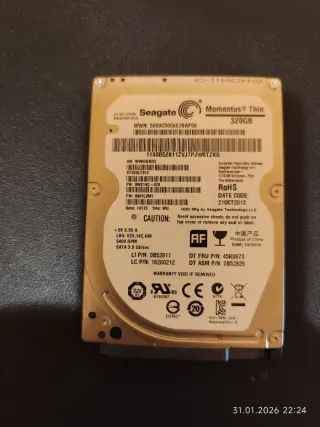 Disco duro interno de 2.5 pulgadas para portátil. - Capacidad: 320 GB - Interfaz: SATA 3.0 Gb/sec - Velocidad: 5400 RPM - Modelo: Momentus Thin Precio 15€